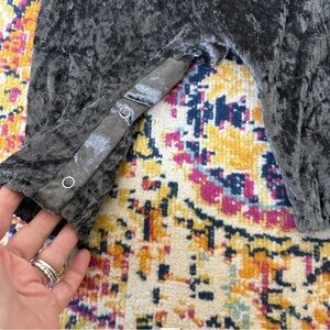 Hood with plush tuft, graphic scar and attached vinyl bolts, jumpsuit with attached tattered vest and snaps for easy diaper change