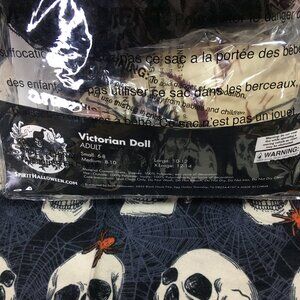 Selling a used Spirit Halloween Victorian Doll Women's Adult Halloween Costume in great condition only used once all pieces are in bag and no stains or rips. Costume size is XL 12-14 color is black.