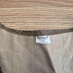 In good condition. The only flaw is a small hole on the back. But it is not very visible when worn since it blends with the pattern. See the 3rd photo for the hole on the inside and the 4th photo for the hole on the back, which will be visible.