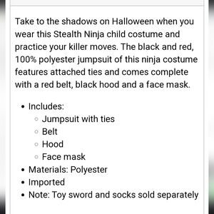 Spirit Halloween~Stealth Ninja Costume~Size Small 6/8~Black Red