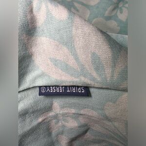 Brighten up your wardrobe with this coastal-inspired long sleeve tee by Spirit Jersey. Featuring a soft split design with tropical hibiscus floral print in pastel aqua and white. The top half is solid ivory with classic Spirit Jersey styling—perfect for layering, lounging, or vacation-ready looks. New without tags!