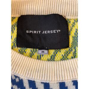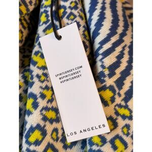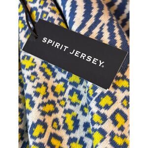 Spirit Jersey NY Sweater Blue Yellow Zebra Leopard Print 100% Cotton M
