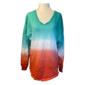 Spirit Jersey St Lucia Green Orange Ombre Oversize Long Sleeve Shirt XS