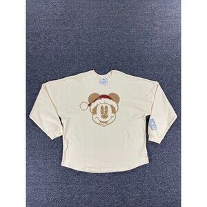 Spirit Jersey Sweater Adult 2XL XXL Beige Disney Mickey Santa Sequined Holiday