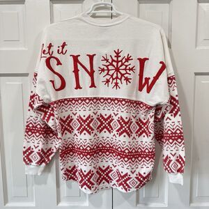 Spirit Jersey Vintage “Let It Snow” Red Snow Flakes Moose Fair Isle Shirt Size S