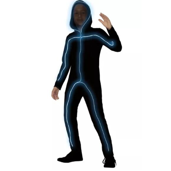 Spirit Light-Up EL Wire Stick Figure Costume Bodysuit Kids Medium Black blue