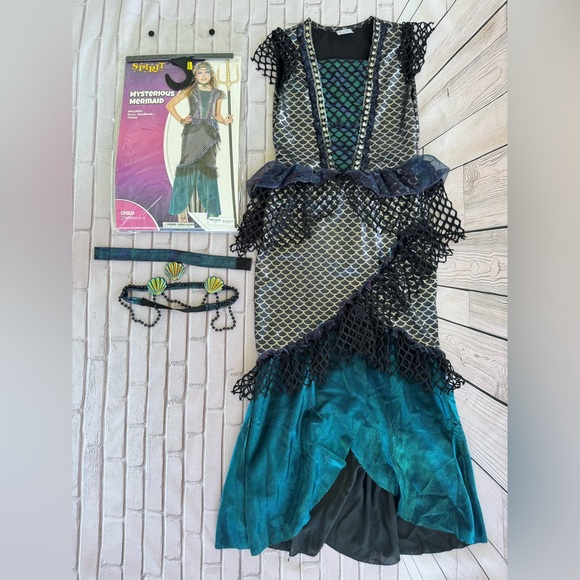 Mysterious Mermaid Costume Dress Headband Choker Spirit Halloween Sz M 8-10 Girl