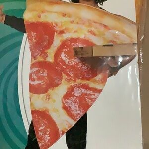 Fun pizza slice costume with pepperoni design. Easy to wear pullover style. Perfect for Halloween fun. Wore once in like new costume