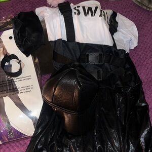 Join the mission with this Spirit SWAT costume. Includes dress, hat, gloves, and arm straps. Perfect for adventurous play. Size youth Large 12/14 new in bag