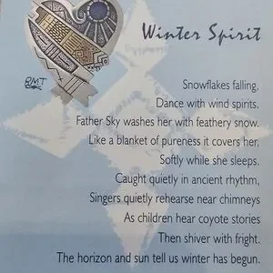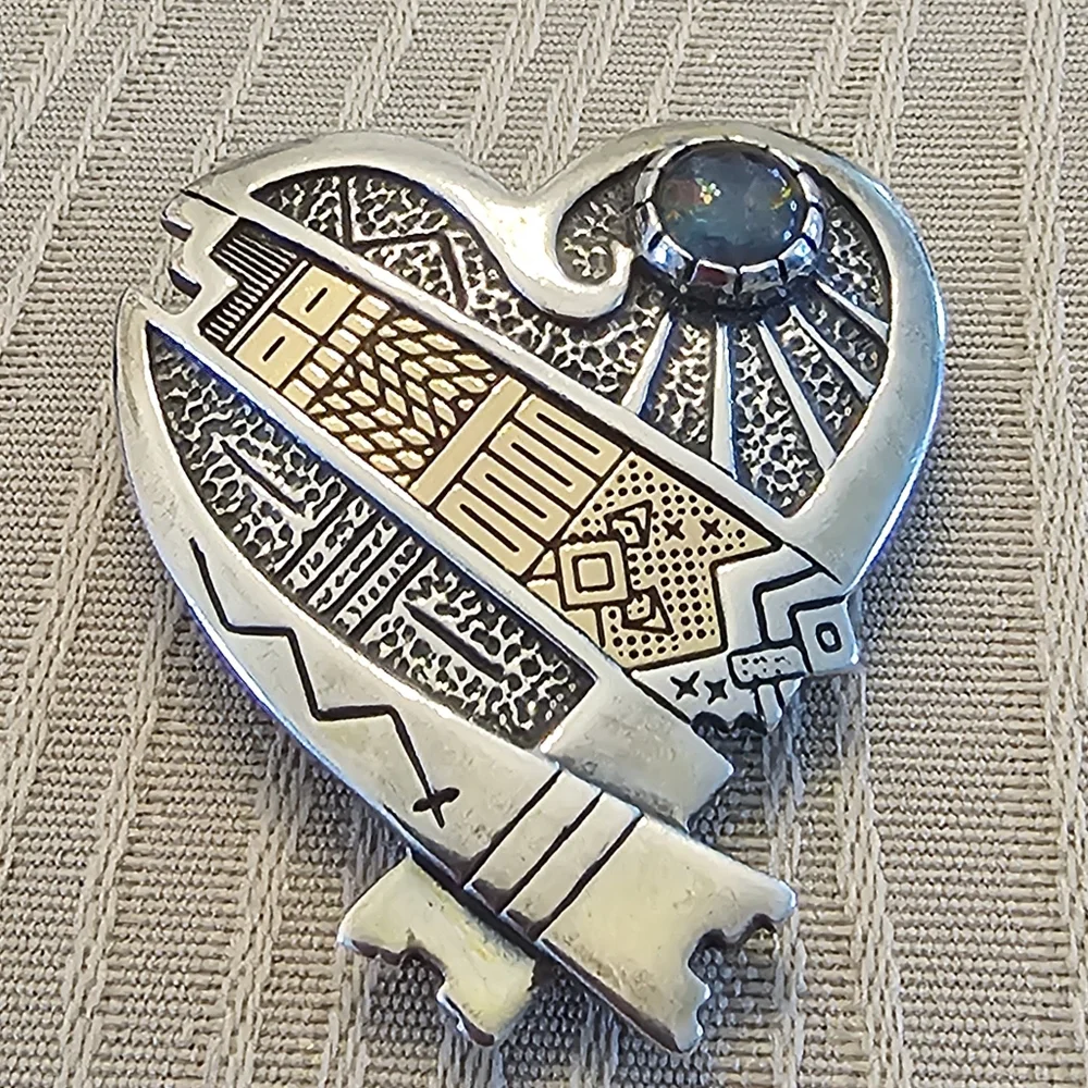 WINTER SPIRIT = sterling silver and 14K gold and an Opel. This piece measures 1 3/8 inches, is a beautiful piece with excellent workmanship, weighing in at 12.8 grams.
