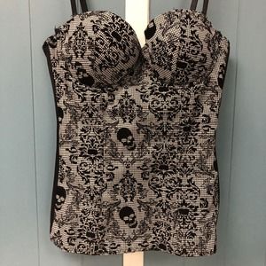 Spirit Sexy Size L Damask Skulls Flocked Bustier corset pinup Boudoir Black