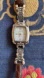 Elegant silver watch with floral details. Features a white dial with Roman numerals.