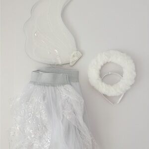 Elegant costume Angel set set with shimmering silver and pure white elements. Includes multiple pieces for a complete look.
