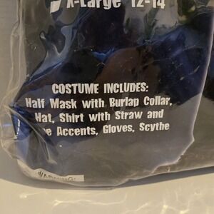 Used once, super adorable spirit, wicked scarecrow boys costume size large 10–12. The custom includes half mask with burlap collar, hat with straw and rope, accents, gloves, and the scythe! Complete costume with Accessories!