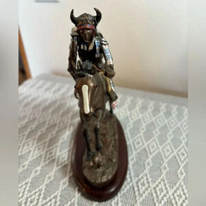 Spirit of the Plains by Chuck Ren, Hamilton Collection 1993, Bronze. Warrior with Spear. 2.35lb, Approximate measurements: 7 1/2” tall and 7 1/2” from tail to nose. Vibrant colors. Preowned.