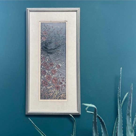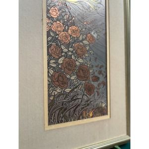 This Art Nouveau etching composed of sterling silver and 24 karat gold on copper. Created in 1984 by the Franklin Mint of Paris, the work depicts a young girl in a field of flowers.