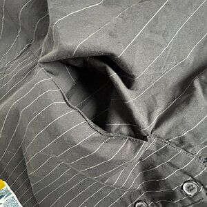 SpiritHouse Women’s Asymmetric Pinstripe Shirt Black Art to Wear Button-Up S/M