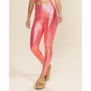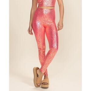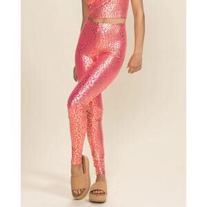 Spirithoods Metallic Leggings Neon Pink Leopard Elastic Waist High-Rise Sz L