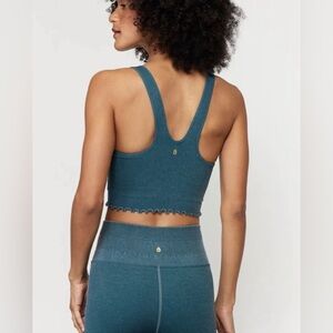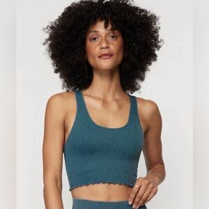 Spiritual Gangster Amor Crop Tank, Teal, Blue, Green Lined w/Shelf Bra, Size M/L