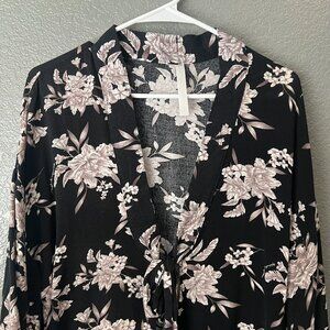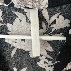 Wrap yourself in bohemian elegance with this Spiritual Gangster kimono featuring a beautiful black background adorned with delicate floral patterns in shades of cream and grey. This lightweight layer adds a touch of effortless style to any outfit, perfect for lounging or dressing up.