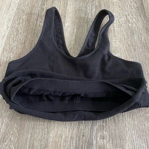 Spiritual Gangster Black Ribbed Built in Bra Crop Tank - Size: M/L