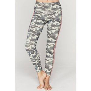 Spiritual Gangster CAMO Perfect Highwaist Legging. Size Medium. This active legging features a camo print, side sparkle stripe, double layer waistband, flat seams and comfortable compression perfect for medium to low impact workouts. Made from an active fabric that feels like cotton but designed to perform. Wicks and dries quickly. Retail $108. Approximate Measurements: Inseam-27' Rise-10 1/2" Waist Laying Flat-12." Excellent Pre-Owned Condition.