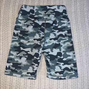 Stylish camo print biker shorts. Perfect for workouts or casual wear.