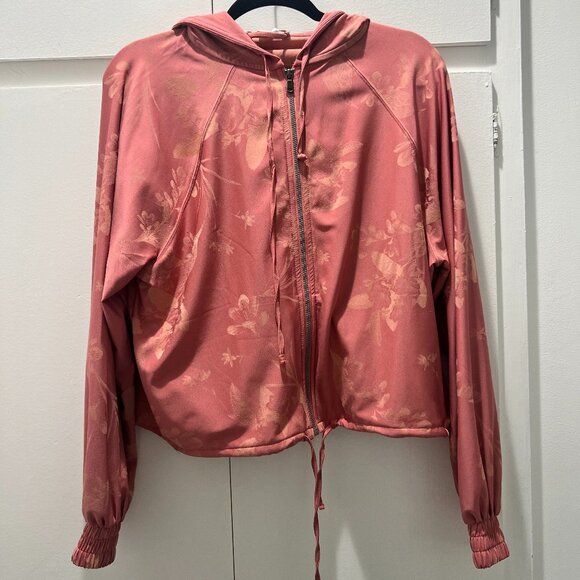 Spiritual Gangster Pink Floral Flow Rider Zip Up Hoodie Size S