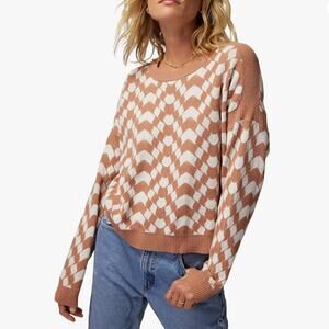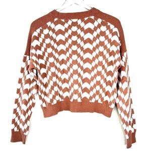 Spiritual Gangster Gemma Sweater Wavy Checkered Tan White Pullover Boxy SMALL