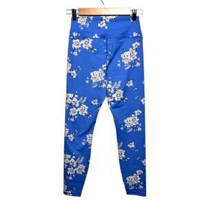 Spiritual Gangster “The Perfect High Rise” leggings feature a vibrant blue floral print and a supportive double-layer waistband. Sweat-wicking, quick-dry fabric makes them ideal for yoga, workouts, or everyday athleisure. Mild cracking to the interior size label only.