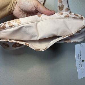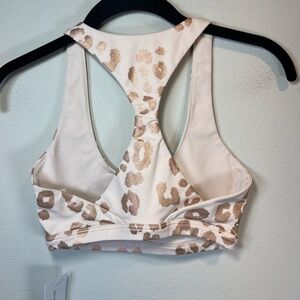 Stylish leopard print sports bra. Cream base with gold accents. Racerback design. Comfortable and chic. NWOT. Size S