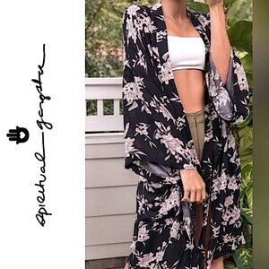 Spiritual Gangster Maya Floral Kimono Black 100% Rayon Robe One Size