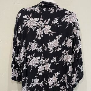 Spiritual Gangster Women's Maya Black Gray White Floral Kimono Robe Top