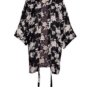 "Made of rayon fabric to keep you cool, this kimono is a summer essential that can be dressed up or down. It features soft, comfortable front pockets and a belt, so you can wear it multiple ways"