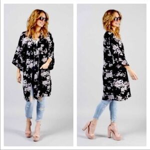 Floral print Maya kimono by Spiritual Gangster! Made of rayon fabric to keep you cool, this kimono can be dressed up or down. It features soft, comfortable front pockets and a belt, so you can wear it multiple ways. One size. In great condition!