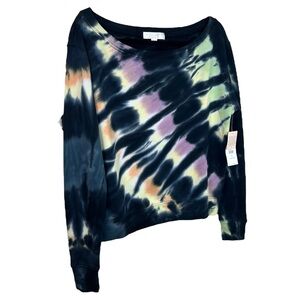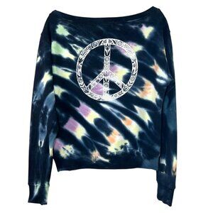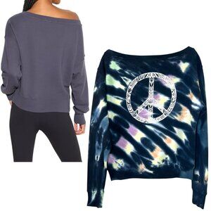 Spiritual Gangster NWT Women’s Tie-Dye Vida Sweatshirt Off-Shoulder Blue X-Small