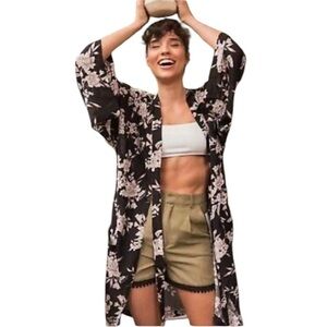 Spiritual Gangster OS Maya Black Floral Long Kimono One Size Casual
