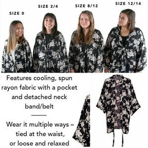 With roomy, open-front pockets and an extra-large fit, this kimono is as practical as it is stylish, comfortably fitting up to a size 16. It has a flattering, flowy silhouette with a measurement of 21 inches from armpit to armpit and a length of 39.5 inches, providing excellent coverage and a luxurious drape.