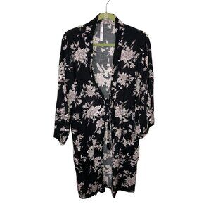 Spiritual Gangster One Size Black White Floral Tie Front Short Robe Rayon Kimono
