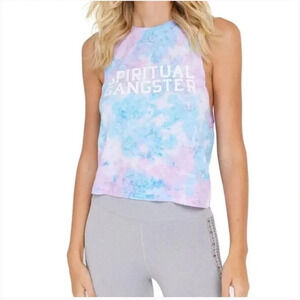 sky tie dye spiritual gangster karissa muscle tank, size XS/S, pit to pit 18’’
