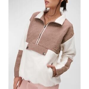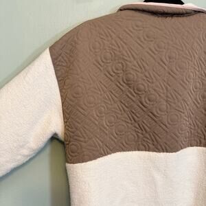 Spiritual Gangster Sherpa Half-Zip Pullover LOVE Jacket Womens Small Brown Cream