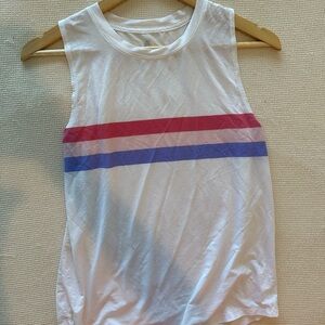 White sleeveless top with red and purple stripes. In perfect condition so cute on! #activewear #yoga #casual #spiritual