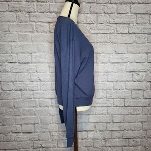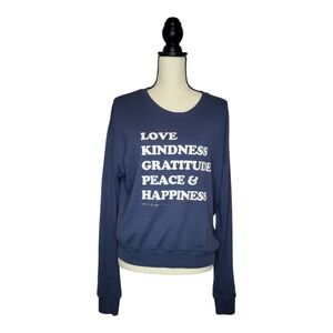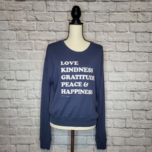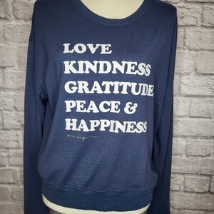 Spiritual Gangster Top Blue White Graphic Letters Scoop Neck Long Sleeve Size XL