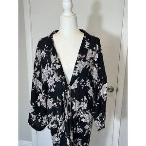 Spiritual Gangster Womens Floral Kimono Black & White One Size Wrap