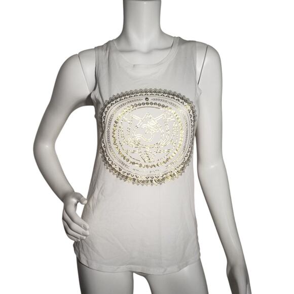 Spiritual Gangster Womens Small White Gold Foil Sleeveless Yoga Tank Top