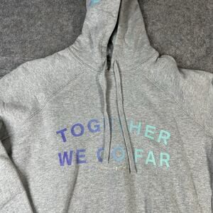 Crafted for comfort and style, the Spiritual Gangster X Peloton Raglan Hoodie is a versatile addition to your activewear collection. In a sleek gray color, this long-sleeve pullover features a smart collared neckline, perfect for both yoga sessions and casual outings. Its solid pattern and regular fit seamlessly blend with your existing wardrobe, making it an essential for those who appreciate both functionality and fashion. The hoodie is machine washable for easy care, ensuring that it remains a staple in your routine. With its empowering message "Together We Go Far" across the back, it serves as a reminder to fuel your workout and uplift your spirit. Whether you're headed to the studio or running errands, this Spiritual Gangster hoodie in size small is designed to keep pace with your active lifestyle.