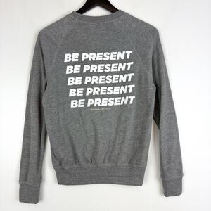 Spiritual Gangster XS Be Present Embroidered Heart Gray Crew Raglan Sweatshirt
