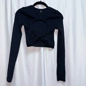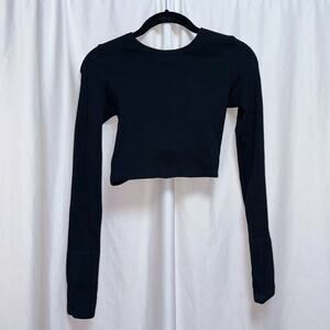 Spiritual Gangster Open Back Crop Top Ribbed Long Sleeve Black | Size XS/S
