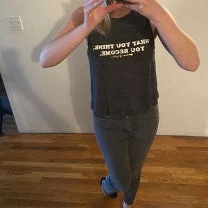Spiritual Gangster what you think you become cropped graphic print muscle tank S