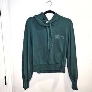 Spiritual Gangster Hoodie Women's Large Green Crop Drawstring Gorpcore Stretch